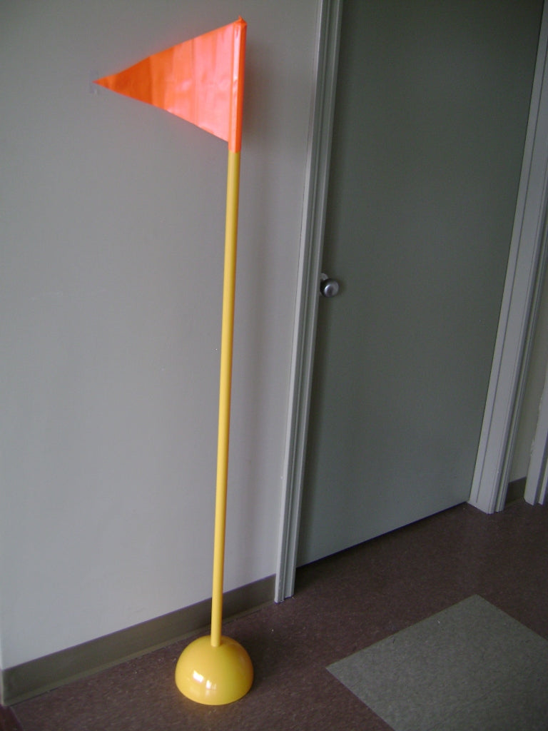Ensemble de 4 marqueurs de coin de ligne de touche avec drapeau en nylon haute visibilité. Drapeaux montés sur des poteaux flexibles à ressort de 5'. Complet avec ancrage au sol pour une installation et un retrait faciles.