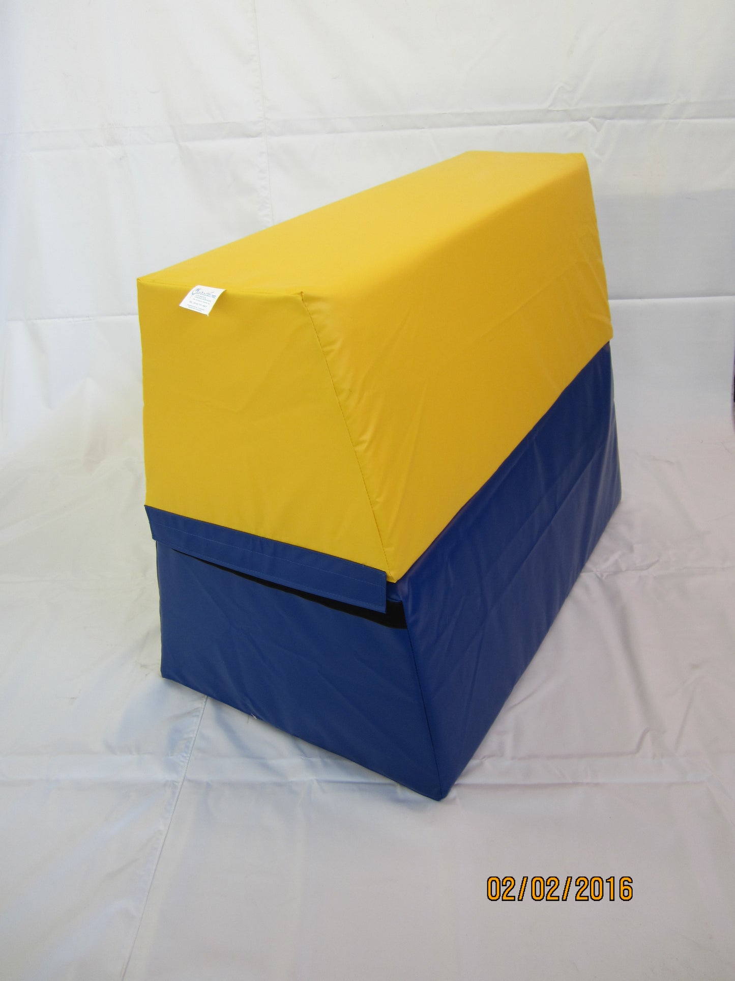 Caisson de saut composé de deux à quatre sections de cale en mousse fixées entre elles par du velcro.