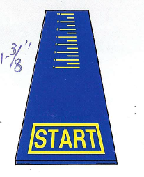 This mat with metric and imperial calibrations has 1' take off area with graduations every inch and foot to 10'. Folds in three for easy storage.