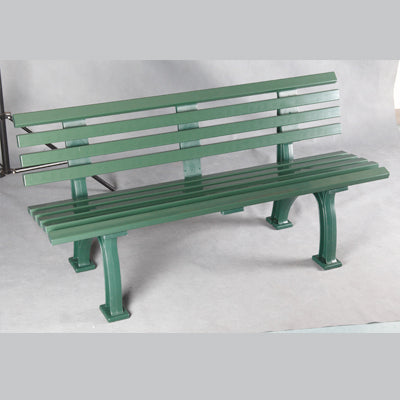 The "Courtsider" bench is 5' wide and constructed from maintenance free, high density polyethylene. Bench is easily assembled and can be bolted into place.